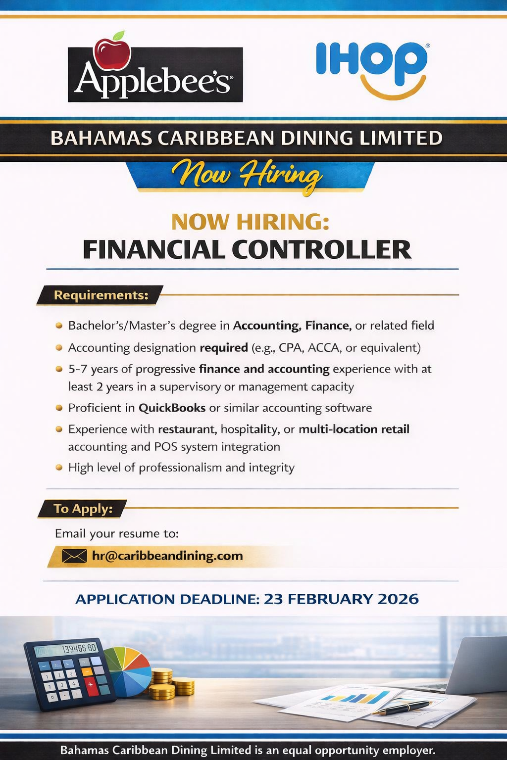| 4 | Feb 19,2026 | Financial Controller – Bahamas Caribbean Dining Limited |
